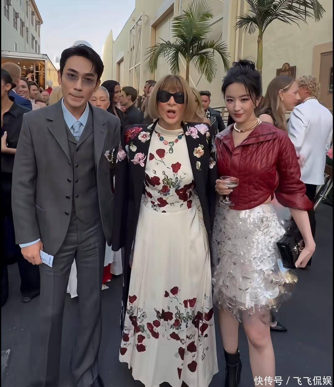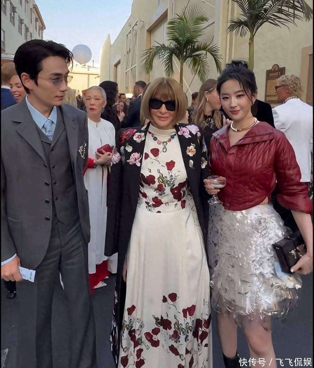 活动现场最有趣的瞬间,莫过于刘亦菲和朱一龙的同框合影,两人与《Vogue》总主编安娜·温图尔合影。